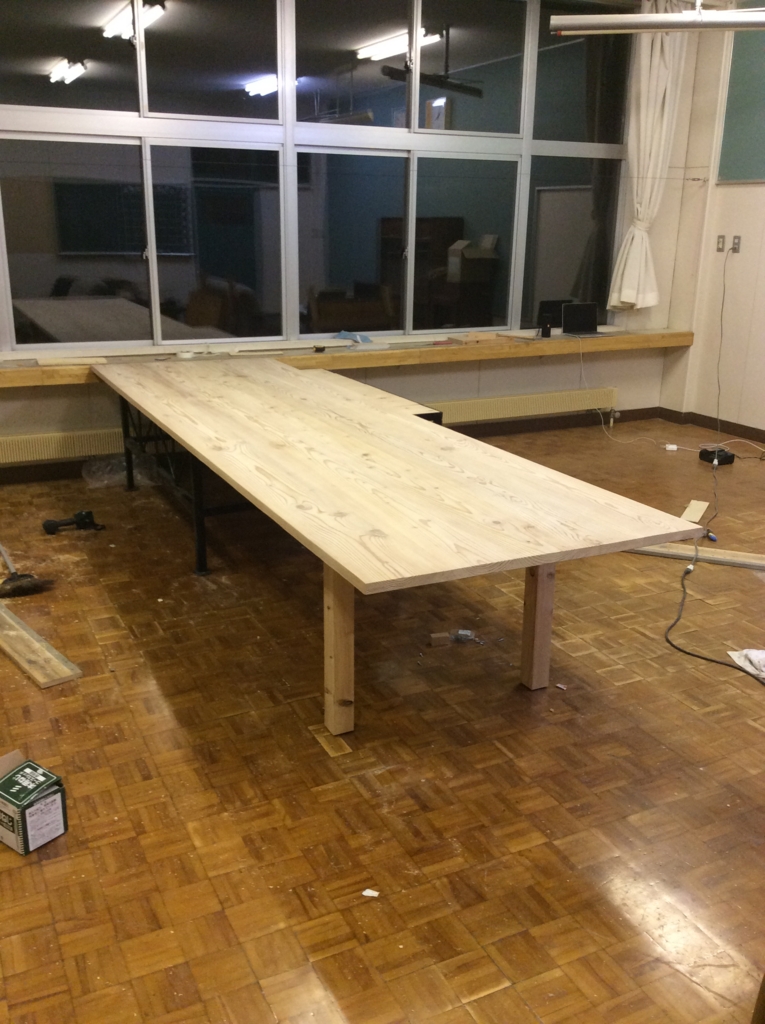 浦幌町産のカラマツで作ったテーブル完成披露会を